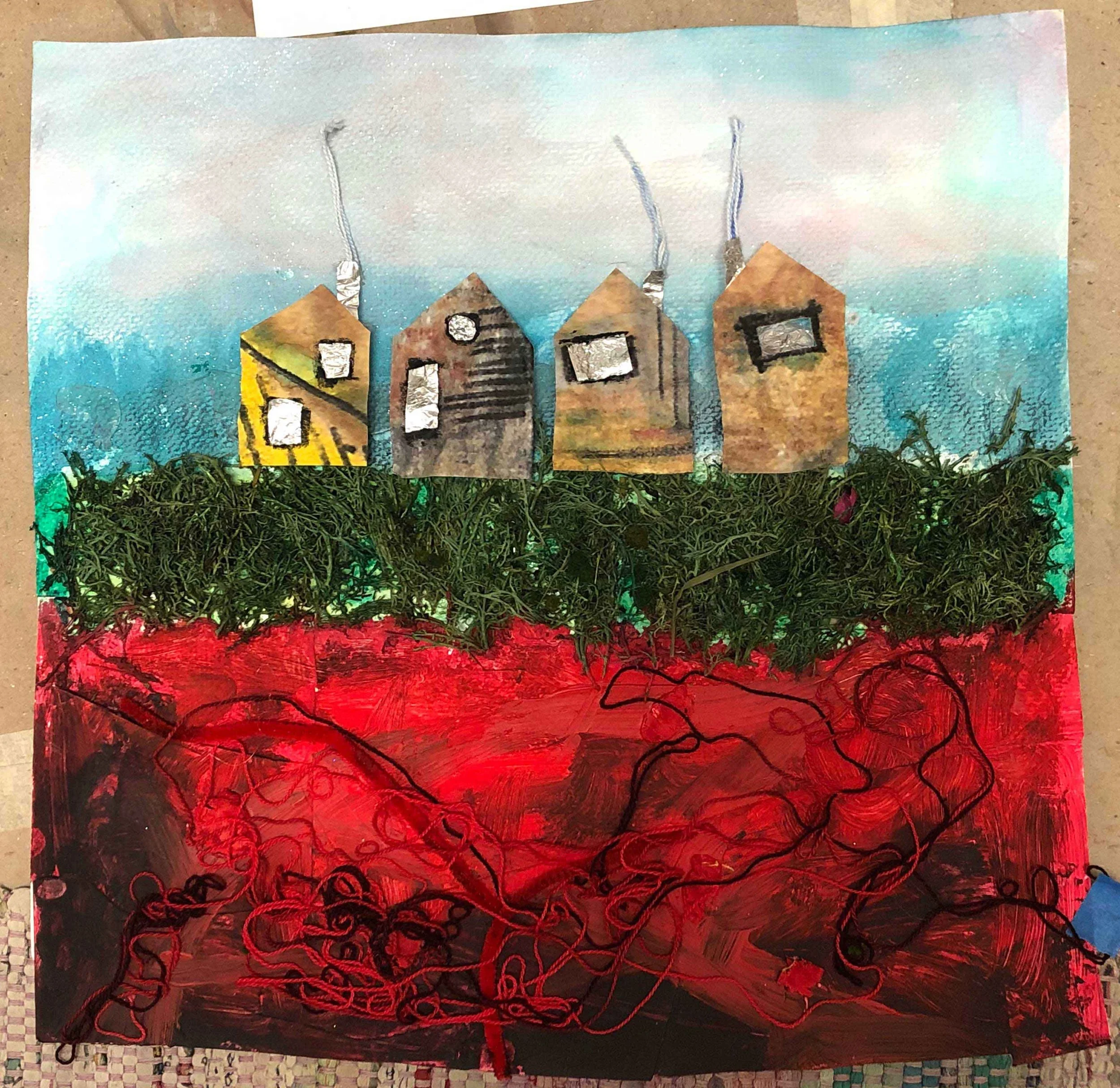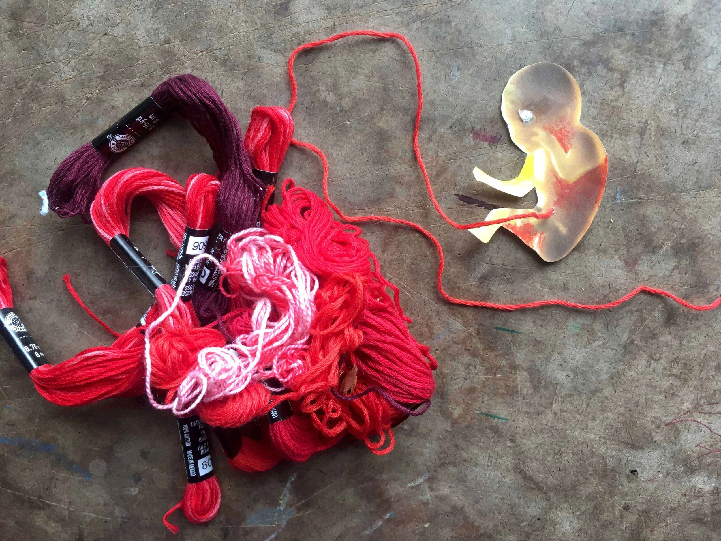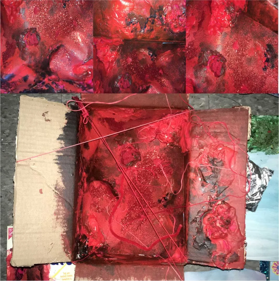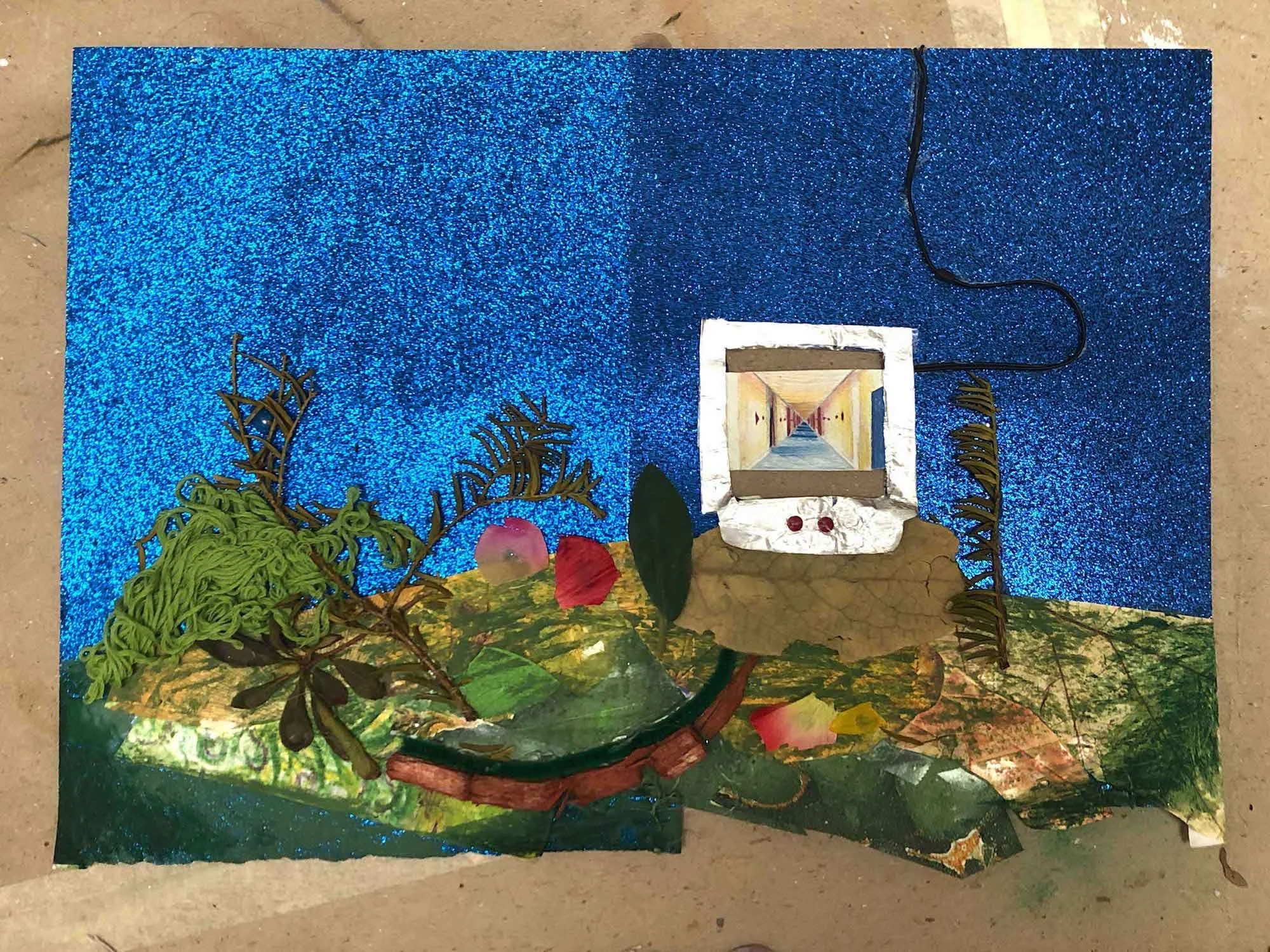 Internal body set: Acrylic, plasticine, playdough, glitter, embroidery thread, pipe cleaners; TV forest & houses sets: Glitter, foliage, collage, aluminum foil, wire, acrylic