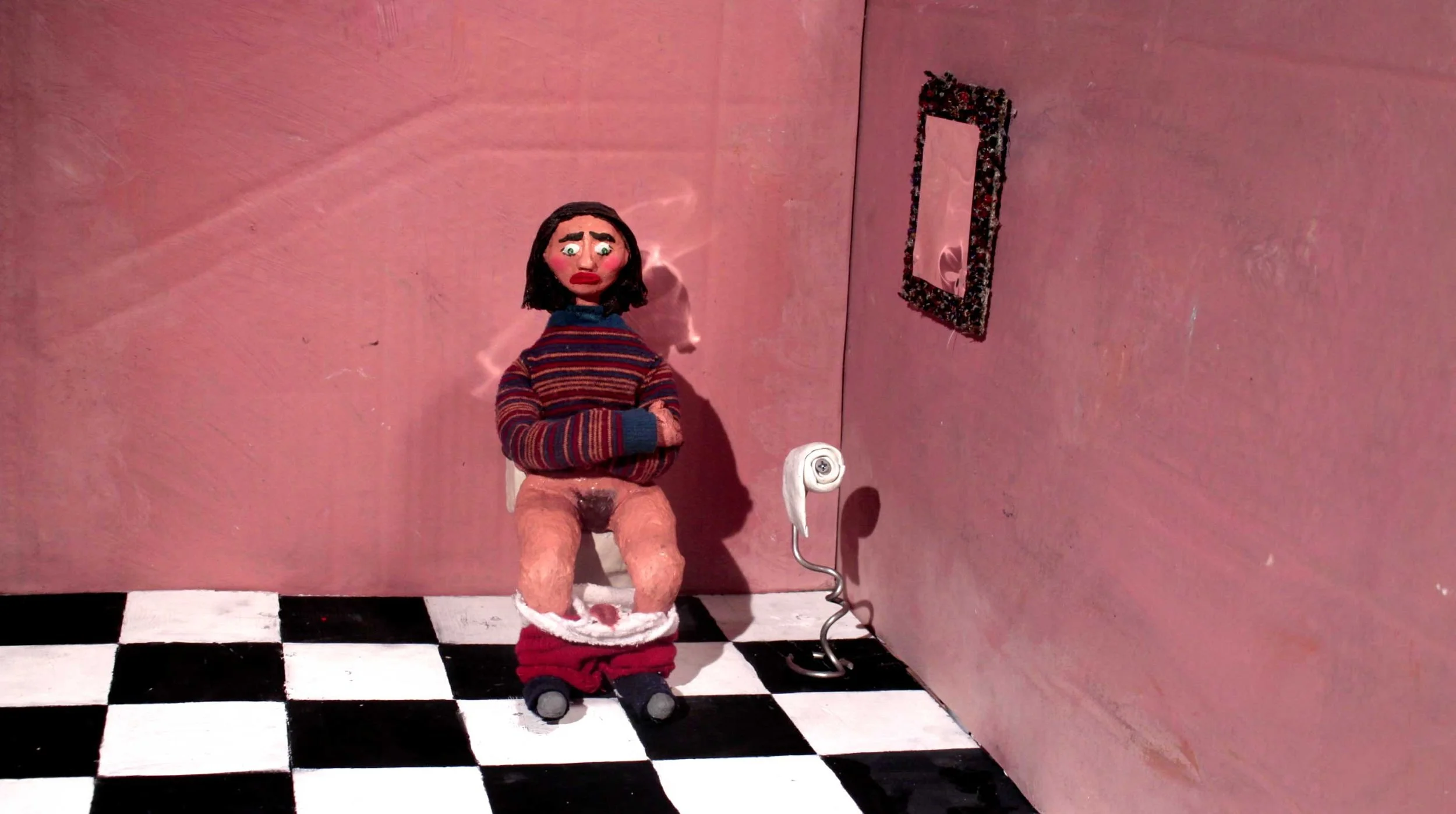 Period Piece is a stop motion film with a dark and humorous spin on first periods. While sitting on the toilet, a young girl is surprised to discover blood in her underwear. In a state of shock, she embarks on a bloody journey where she must face her own anatomy.