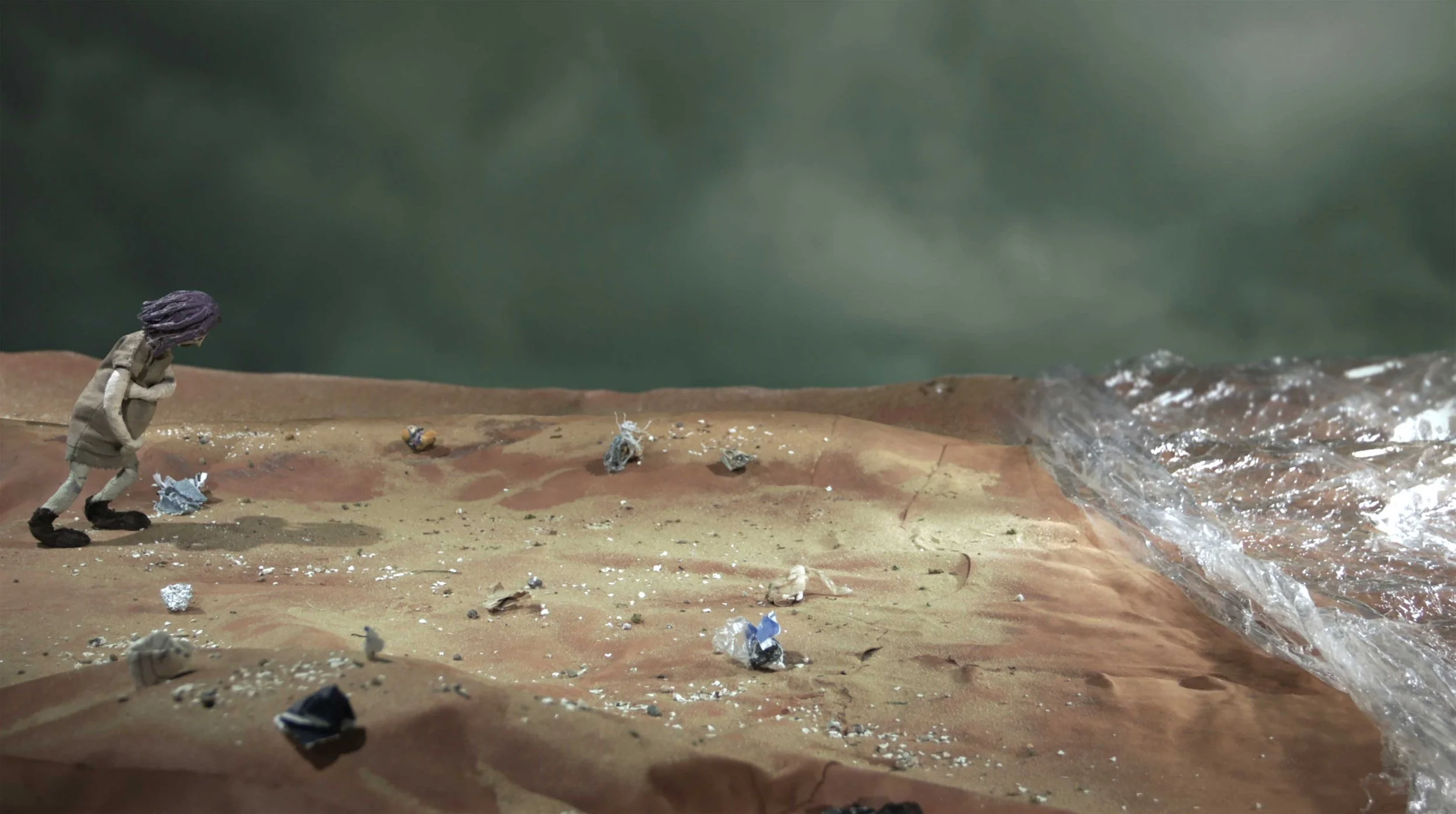 Waste Away is a surreal stop motion short about a homeless woman who becomes pregnant with a fish. The responsibility of motherhood gives her the strength to fight for survival, while the forces of nature threaten to overtake her. The setting of urban neglect emphasizes the pervasive alienation between people, and humanity’s destructive impact on their environment. Relevant to today’s crisis, at a time when nature is undermining our position as its ruler, this animation tells a vivid story of disaster and rebirth. Waste Away is my BFA thesis film at Massachusetts College of Art & Design.