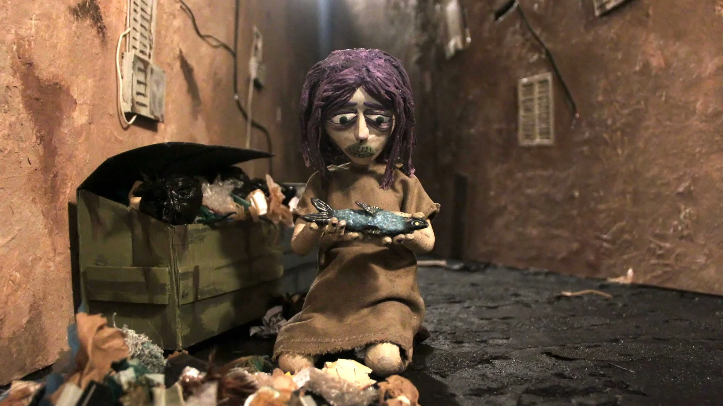 In a trash-filled city, a homeless woman's encounter with a fish takes an unexpected turn.